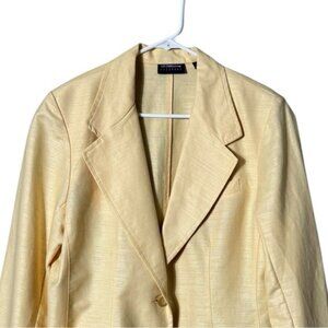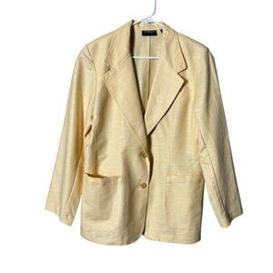 Liz Claiborne Womens Linen Blazer Large Quiet Luxury Preppy Tan Career
