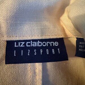 Liz Claiborne Womens Linen Blazer Large Quiet Luxury Preppy Tan Career Cream
