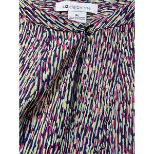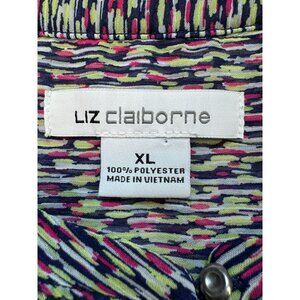 This Liz Claiborne blouse offers a sophisticated look with its vibrant, multicolored pattern. Crafted from 100% polyester, it provides a comfortable and durable fit. The XL size ensures a relaxed and flattering silhouette, suitable for various occasions. Its long sleeves add a touch of elegance, making it a versatile wardrobe addition.
