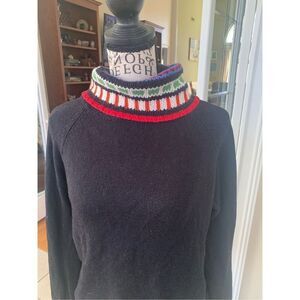 Liz Claiborne Women's Long Sleeve Black Cowl Neck Sweater with colorful accented collar and cuffs. Size large but runs small.