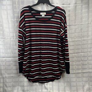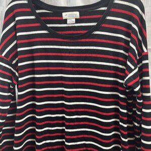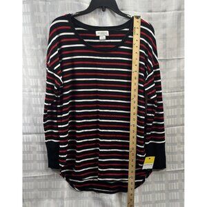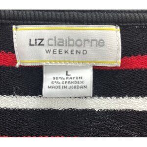 Liz Claiborne Womens Multicolor Striped Round Neck Long Sleeves Blouse Top Sz L
