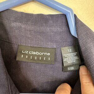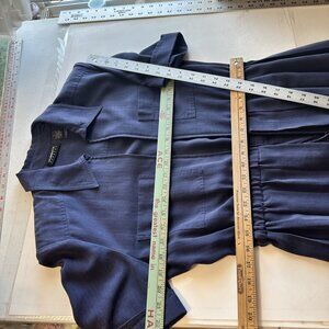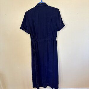 This elegant navy midi dress from Liz Claiborne features a pleated design and short sleeves. The dress is comfortable and stylish, with a zip-up front and an elastic waist for a flattering fit.