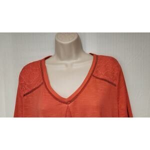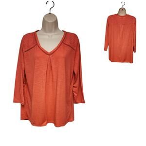 Liz Claiborne Women's Orange Long Sleeve V Neck Pullover Tunic Blouse Top Size L
