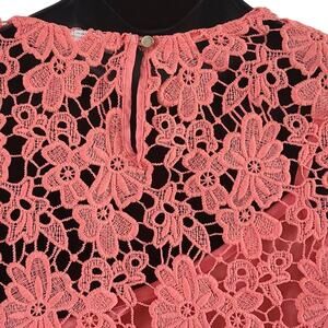 Liz Claiborne Women's Petite Large Coral Lace Short Sleeve Blouse Top NWOT