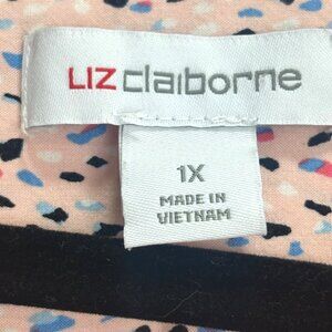 Liz Claiborne Womens Pink Multicolor Print speckled Blouse 1X 3/4 Sleeve Top
