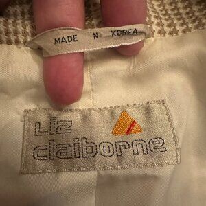 Liz Claiborne Womens Plaid Blazer Jacket Size 12 Beige/Brown 100% Pure Wool Made