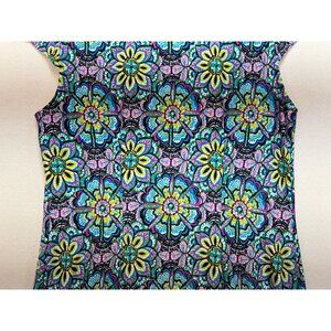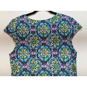 Liz Claiborne Womens Shift Dress Size 12 Multicolor Floral Short-Sleeve Boho