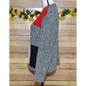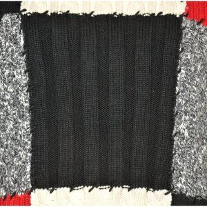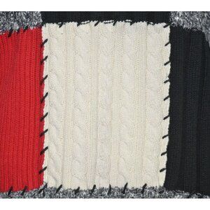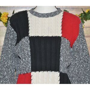 Liz Claiborne Women's Size L Gray Red Black Patchwork Sweater Chunky Knit Warm
