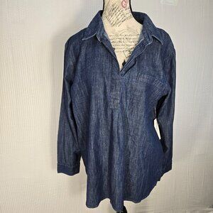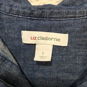 Liz Claiborne Women's Size L Long Sleeve Button Up V-Neck Denim Tunic Top NWT