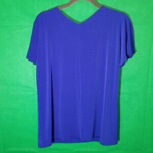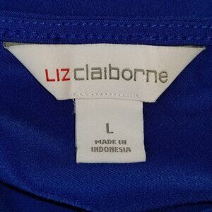 Up for sale is - Liz Claiborne Womens Size Large V-neck Blue Slit Flutter Sleeve Office Party