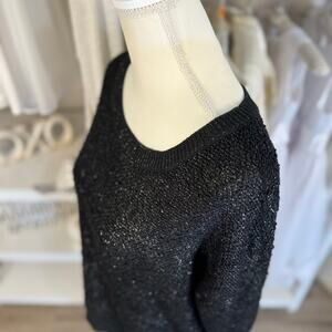 Liz Claiborne Women's Size S Black Metallic Scoopneck Pullover Sweater #3429