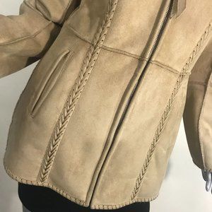 Liz Claiborne Women's Small Tan Faux Suede Long Mid Length Coat Zip Up, Faux Fur