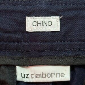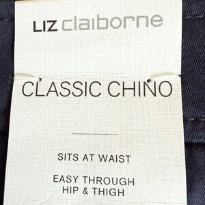 These Liz Claiborne Classic Chino pants offer a tailored look with a comfortable fit. Designed to sit at the waist, they provide ease through the hip and thigh, making them suitable for professional settings. The navy color adds a versatile touch to your wardrobe.