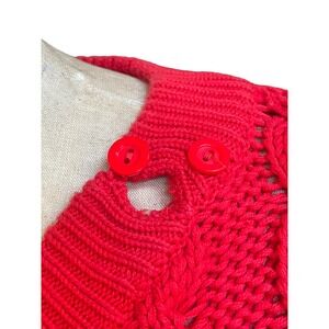 Liz Claiborne Womens Sweater Cable Knit Button Detail Cap Sleeve Crew Red Small
