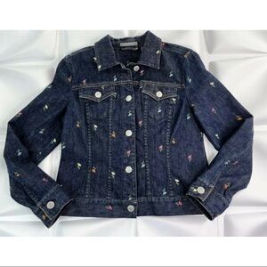 Liz Claiborne Womens Sz M Floral Embroidered Dark Blue Denim Jacket RARE