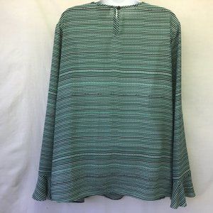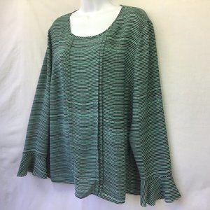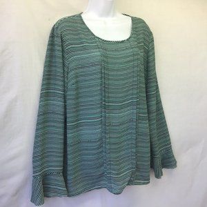 Liz Claiborne Women's Top Green Striped Long Sleeve Pleated Side Slits Tunic Blouse Lightweight Size XL