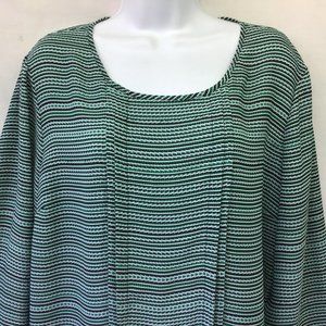 Liz Claiborne Women's Top Green Striped Long Sleeve Pleated Side Slits Tunic XL