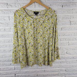 Liz Claiborne Womens Top XXL Plus 3/4 Bell Tied Sleeve Yellow Floral FLO232E