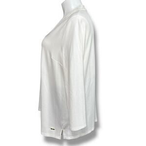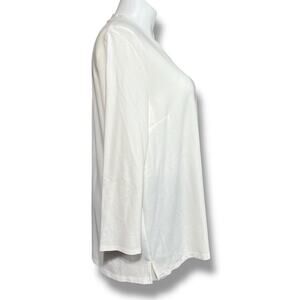 Liz Claiborne Womens Tunic Top V Neck Relaxed Fit Pullover Long Sleeve Cream XXL