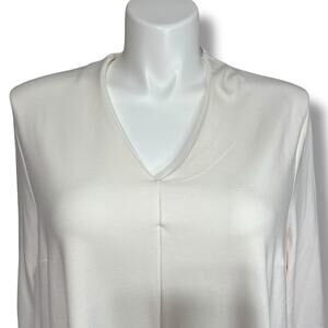 Tunic Top V-Neck Relaxed Fit Pullover Long Sleeve Cream Liz Claiborne