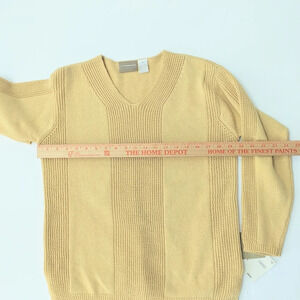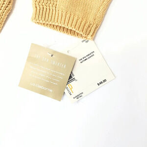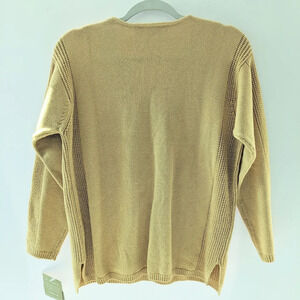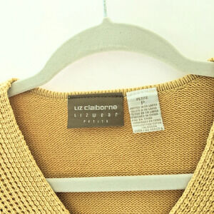 Liz Claiborne women's Petite, soft, cozy, comfortable, lounge length, "Spa Sweater" in the color "Autumn Leaves"(color is like a yellow/gold) with V-Neck and side slits at the hem for a comfort fit. Pit to Pit: approx 20"; Shoulder to Hem approx 24". 100% Cotton. New w/Tags.