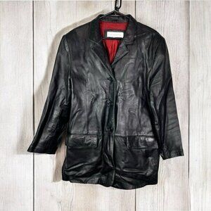 Liz Claiborne Women's Vintage Black Leather Button Up Jacket Size Large