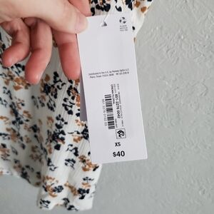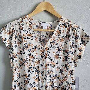 Liz Claiborne Womens White Multicolor Floral Cap Sleeve Button Blouse Sz XS NWT
