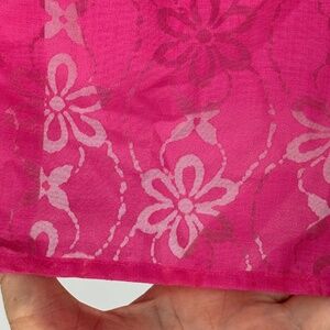 55% cotton 45% polyester blend woven fabric - floral pattern is sheer - bright pink - machine wash