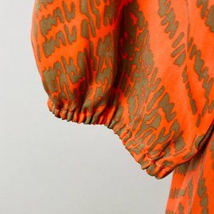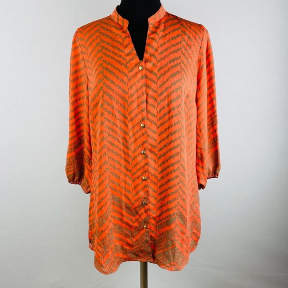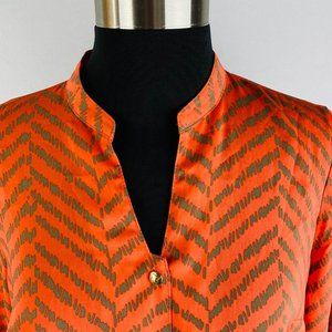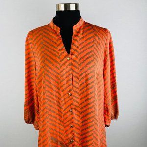 Liz Claiborne Womens XS Polyester Orange Taupe Zig Zag Print Button Down Shirt