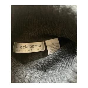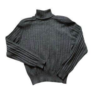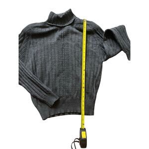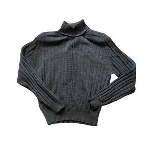 Liz Claiborne Merino Wool Lightweight Turtleneck Sweater Shoulder pads Dolman like Sleeve, Ribbed, Cable knit, Dark Gray Color Women's/Teen Size Medium