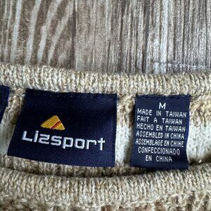 Liz Claiborne Wool Fisherman Sweater Womens M 3D Knit Nordic Vintage Oversized