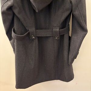 Crafted from a premium wool-blend fabric (61% wool), this coat offers substantial warmth without bulk. It features: