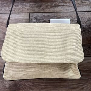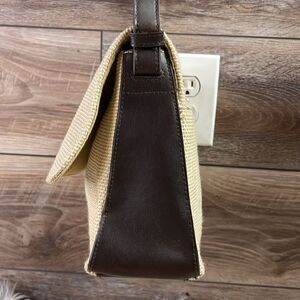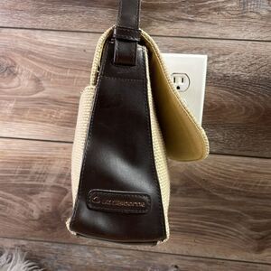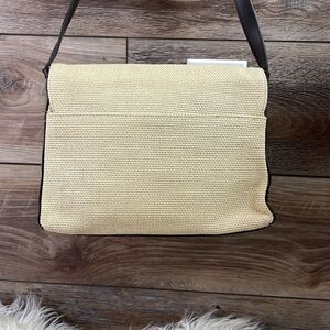 Liz Claiborne Woven Beige Dark Brown Trim Shoulder Bag Purse, Medium Size