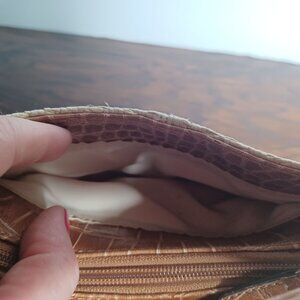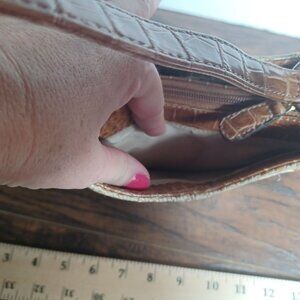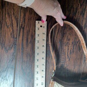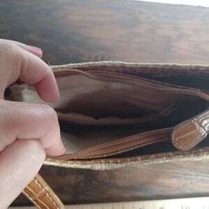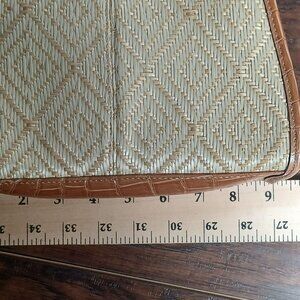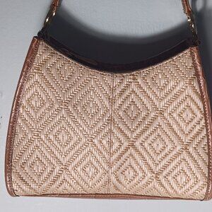 Liz Claiborne Woven Straw Handbag With Brown Leather Trim & Strap Shoulder Bag