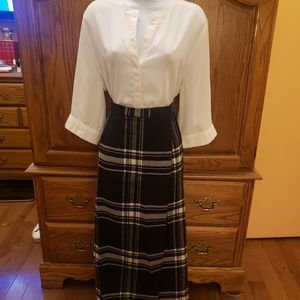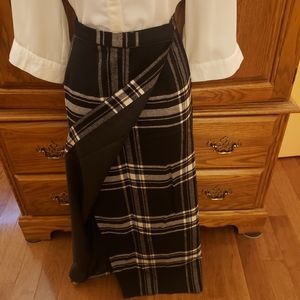 It is a wrap around skirt that's held together with a button and a hook, will look great with a cropped jacket and a pair of boots!