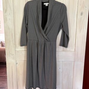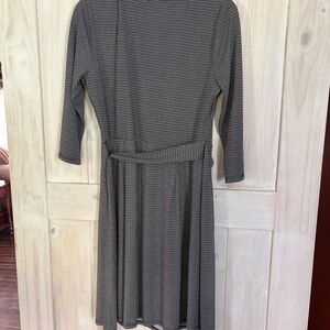 Liz Claiborne Wrap Dress Black White Geometric Print 3/4 Sleeve Knee Length Tie