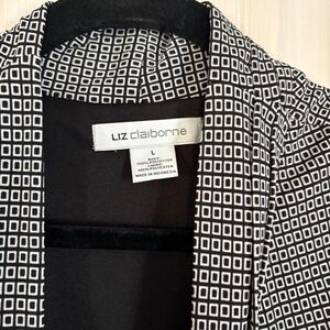 Effortless and timeless, this Liz Claiborne wrap-style dress is perfect for work, weekends, or special occasions. Featuring a flattering tie waist and classic geometric print, it’s a versatile piece that never goes out of style.