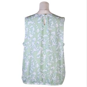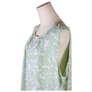 Liz Claiborne XXL Mint Green Floral Blouse Sleeveless Keyhole Business Casual