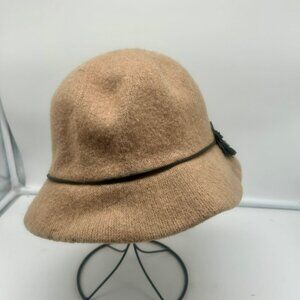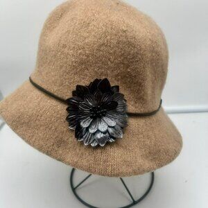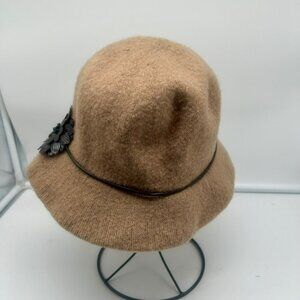Liz Claiborne Y2K Hat Women OS Tan Brown Wool Blend Flower Cloche Bucket Boho
