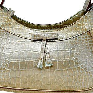 Liz Claiborne Y2K Metallic Gold Faux Croc Baguette Purse Bow Accent Single Strap