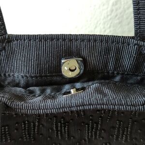 VTG and straight out of the early 00s - This super cute dainty mini hand bag features beaded details on the front, a magnetic snap button closure and thin straps! It has a zipper pocket on the inside. It is black in color! Perfect for just the essentials: phone, ID, credit card, cash, and lip gloss. Great for a night out! Super simple, classic, lightweight, and easy to carry! Very retro!