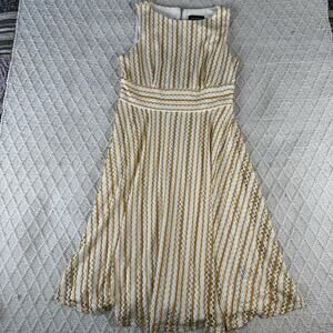 Liz Claiborne Yellow White Textured Stripe Fit & Flare Dress Size 4