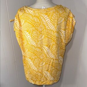 Liz Claiborne Yellow and White Leaf Print Blouse