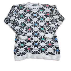 Liz Claiborne black snowflake all over print women's cotton long ski sweater L
