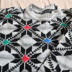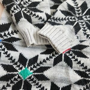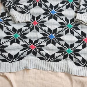 Liz Claiborne black snowflake all over print women's cotton long ski sweater L.