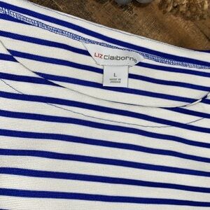 Liz Claiborne blouse sash waist coastal granny striped nautical