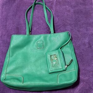 Liz Claiborne bright green Rita bag w/ attached card holder/coin purse GUC