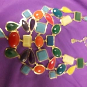 Wow! Talk about a blast from the past! Bright colors, lots of fun, stylish and certainly makes a statement. No earrings, but with a piece like this, finding something to match is easy!