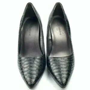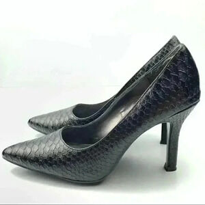 Liz Claiborne flex womens heels size 5.5 black faux leather Alligator print pointy toe