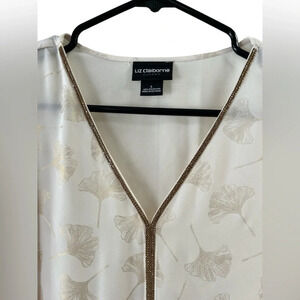 Liz Claiborne floral ivory long sleeve sequined blouse